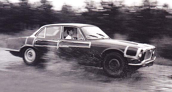 Peter Taylor in one of the development XJ6s on opposite lock at M.I.R.A.