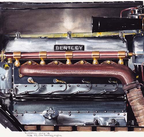 my watercolour homage to the wondrous monoblock 4½ litre 1928 Bentley engine with which Woolf Barnato and Bernard Rubin won the Le Mans 24 hours in 1928