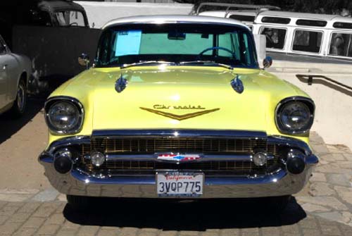this isn't the actual car but I clearly remember the first American car I ever saw, a yellow 57 Chevy, in our street in Dunmurry(!?) I was struck by the slender screen pillars and its glorious turquoise tinted screen . . .