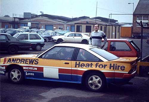 Stuart Spencer with the promotional Opel Manta from Andrews. Note several camouflaged XJ40s in the Jaguar experimental car