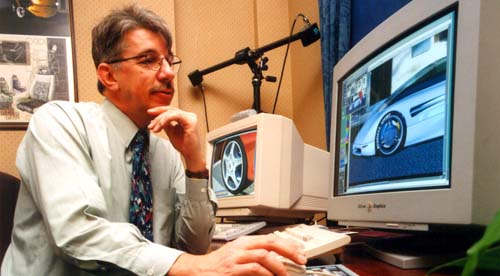 photoshoot for a magazine whilst at CDI, showing virtual sports car designing on the screen.