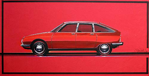 I was obviously impressed with it . . enough to do an old school marker rendering of the car . . . on red canson - what was I thinking!?