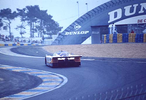 Le Mans 1988, the winning Jaguar XJR9 heads up towards the Dunlop bridge. The event was like a works day out - we kept bumping into people from the Factory!