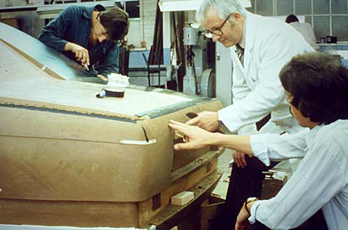 scraping a ¼ scale clay model, soon to become a new Jaguar design; one thing I don't miss about the clay was its smell, and the way it stuck to your shoes!