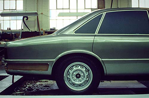 quarter scale fibreglass model of a ground up XJ40 2 door coupé that we worked on in 1986. Taped up as a 4 door this looks similar to the ground up XJ90 of a few years later, a project canned by Ford.