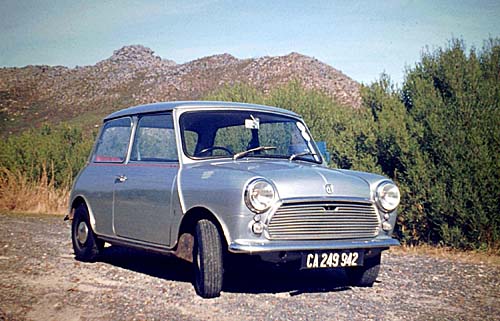 a South African Leyland Mini, assembled at Blackheath in the Cape - my transport for exploring the garden route and the wine growing valleys around Capetown in the late 70s