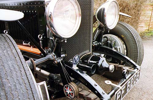 Vintage Bentley components I would become familiar with over subsequent years - huge headlamps, Hartford Shock Absorbers, centrally mounted Dynamo, leaf springs and a seriously substantial chassis frame . .