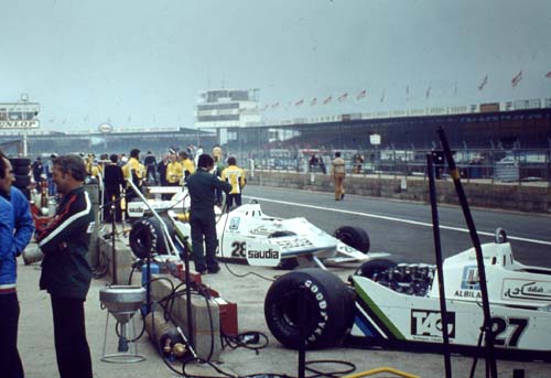 Thursday morning July 12th 1979, the two Williams FW07s sit virtually un-noticed in the pitlane before first practice. A few hours later they would