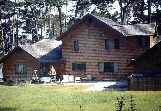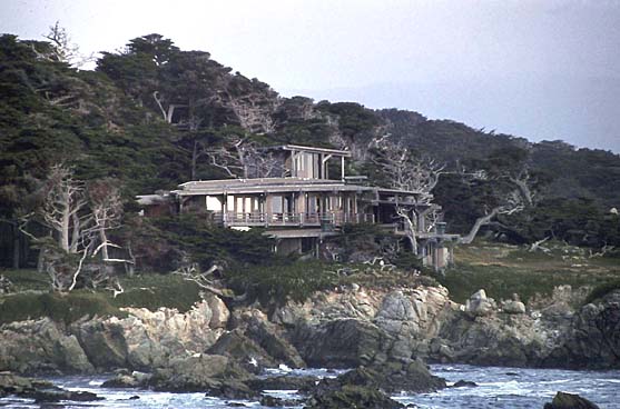 we drive down to a small beach and there it is - a Monterey Cypress construction, looking pretty anonymous on the other side of the cove