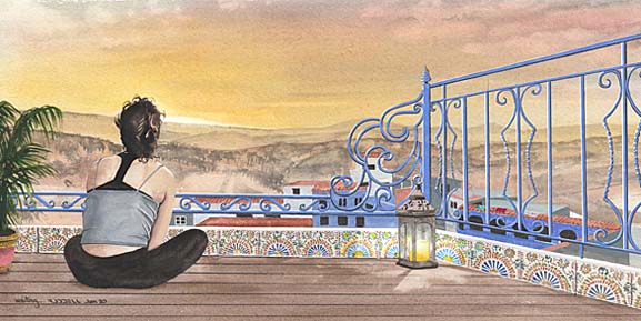 getting ready for sunrise yoga on the Hakuna Matata surf house rooftop.