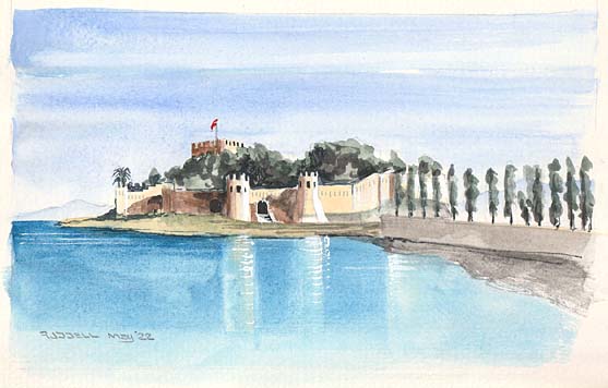 just offshore on Pigeon Island is a walled Byzantine castle that once guarded the town, connected to the mainland via a causeway