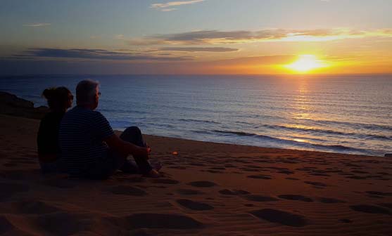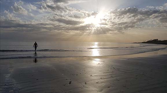 sunset approaches on the deserted small beach as I do my Daniel Craig impression in the warm evening