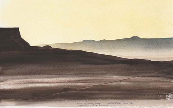 done in gouache on artboard . . time was a factor as the sun washed the canyon walls with continually changing colours!!