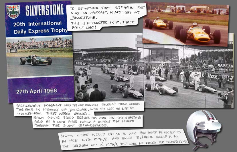 I remember that 27th April 1968 was an overcast windy day at Silverstone. This is reflected in my three paintings.