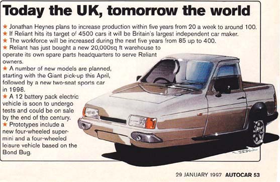 a book of Reliant Pick-up variations done for Jonathan Heynes when he took over Reliant. This picture appeared in an Autocar article on Reliant in January 1997